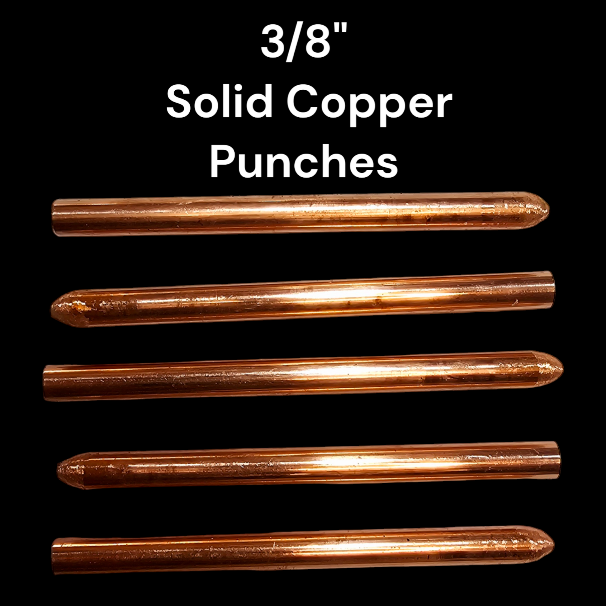 These are 3/8" diameter solid copper punches cut to 5" in length. These punches work great when making square edge axes and other similar items.