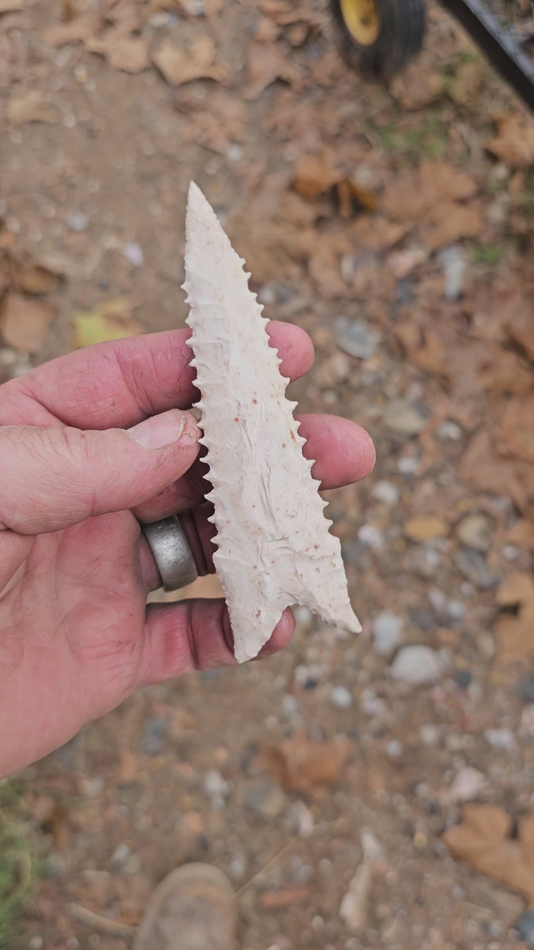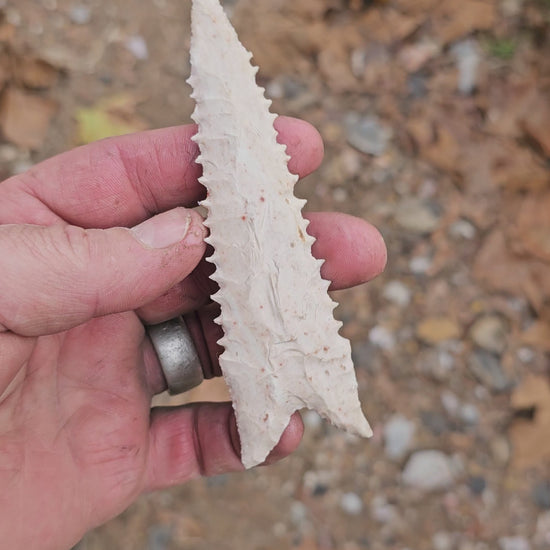 This is a modern Serrated Dalton spear point / arrowhead that was knapped by yours truly. This point is made of heat treated Keokuk chert. Keokuk comes from North eastern Oklahoma and was used by prehistoric people for thousands of years.