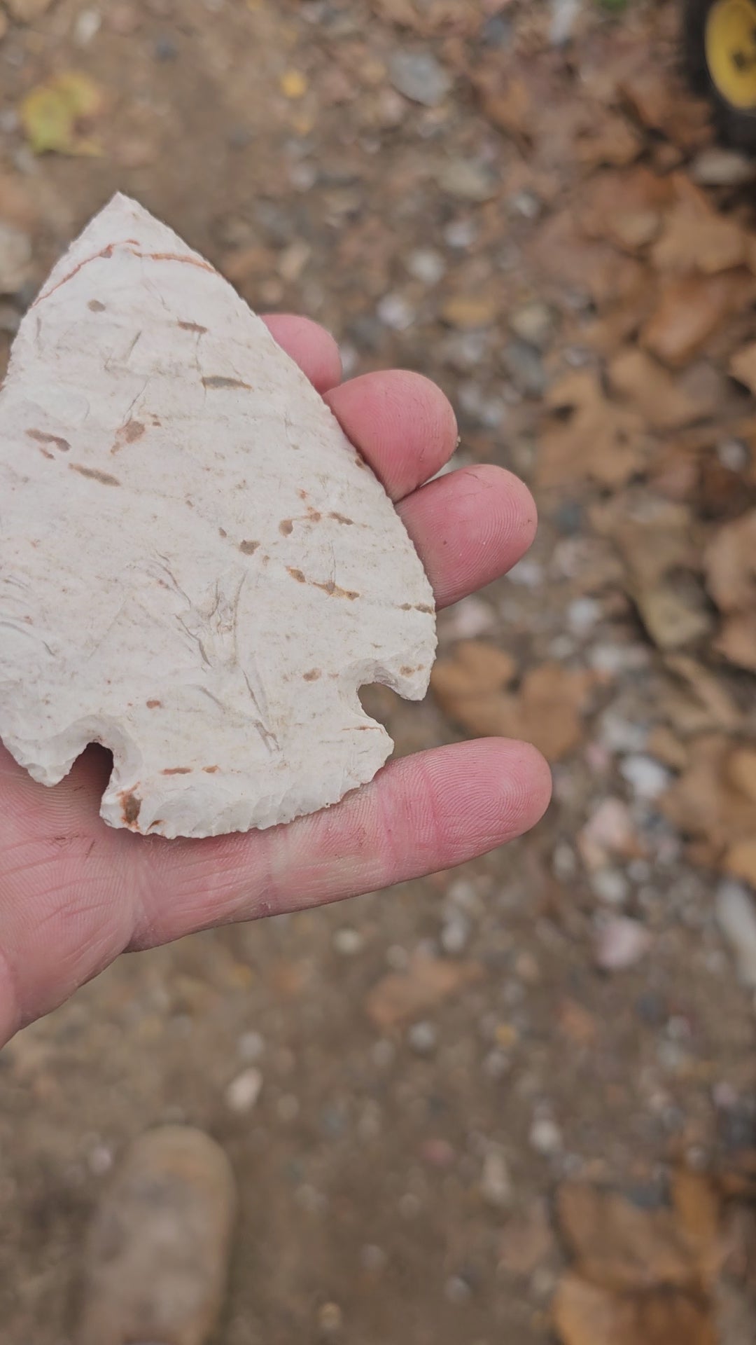 This is a modern Snyders arrowhead that was knapped by yours truly. This point is made of heat treated Keokuk chert. Keokuk comes from North East Oklahoma and was wildly used by prehistoric people