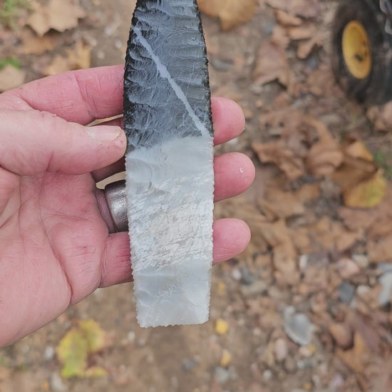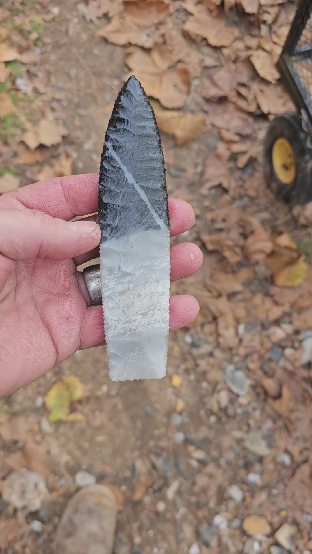 This is a modern stone blade / spear point arrowhead that was knapped by yours truly from heat treated Novaculite chert. Novaculite is a Arkansas flint that was used by ancient people for thousands of years.