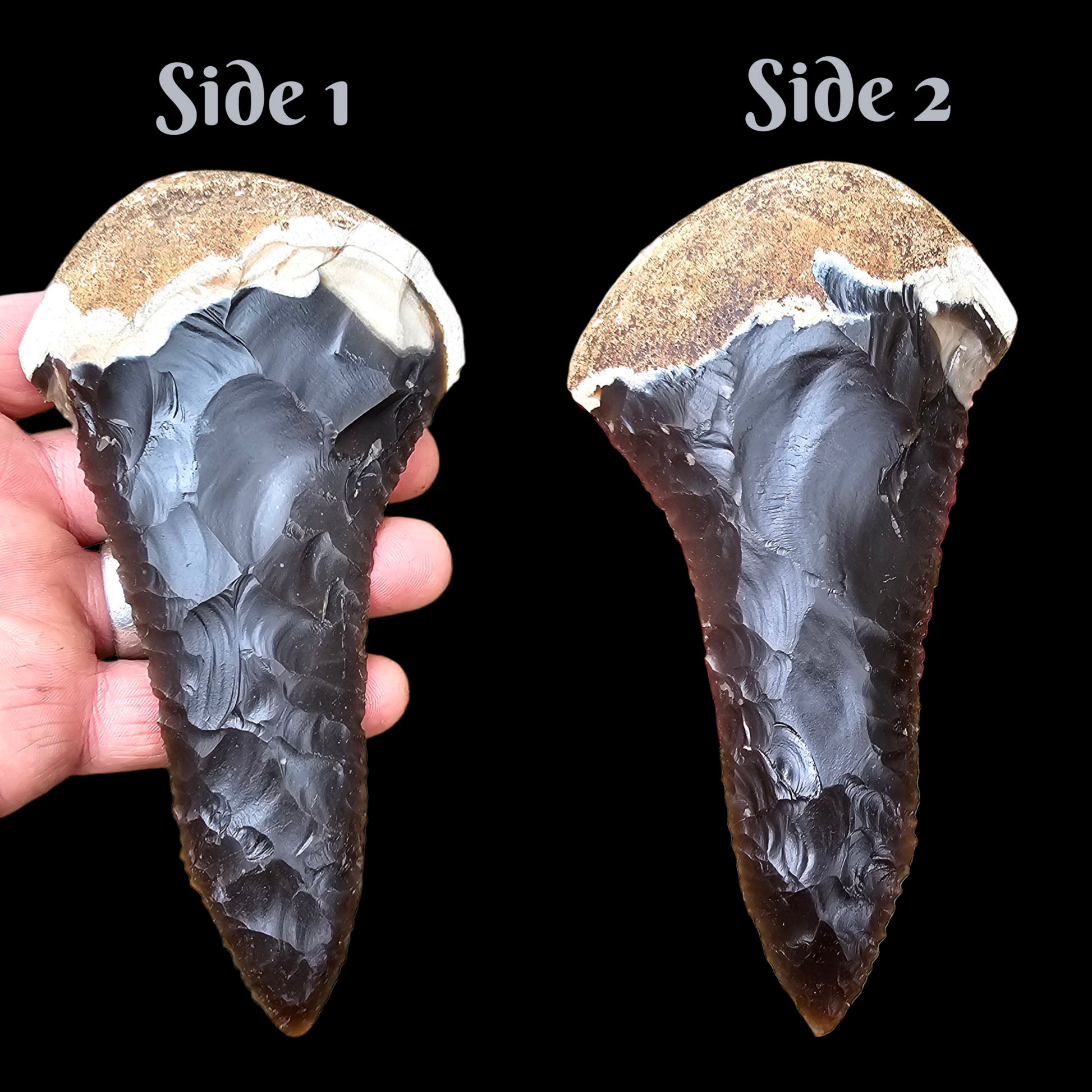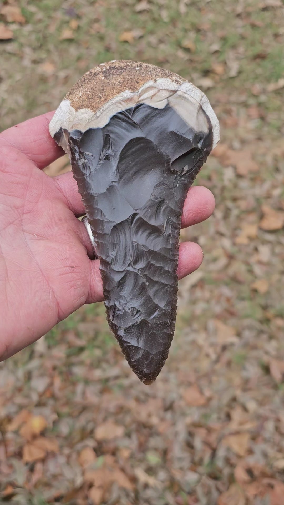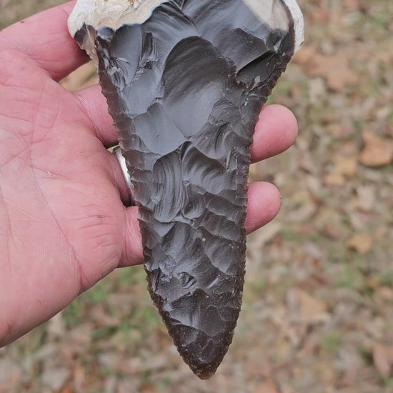 This is a modern butted Knife that was knapped by yours truly from self collected chert. Rootbeer chert is one of the many Edward's Plateau flints and was used by ancient people for thousands of years and is still one of the favorite lithic material for many modern knappers