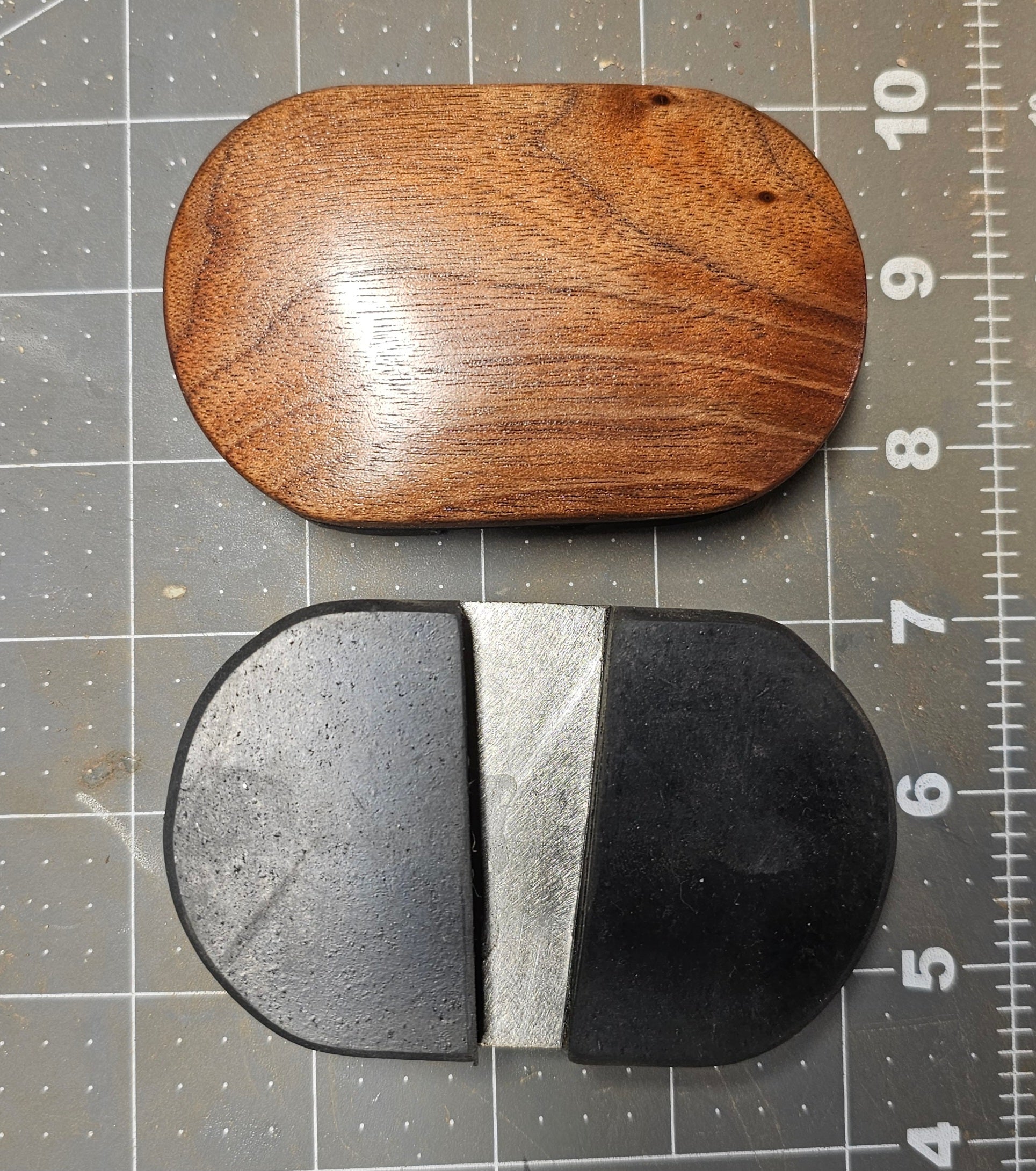 This beautiful wood pad with a is 4 × 1 7/8 x 3/4 and has a steel reinforced flake channel.