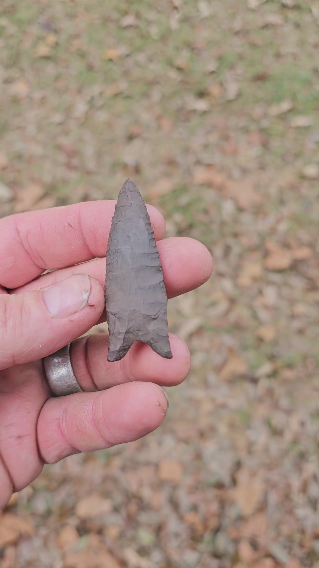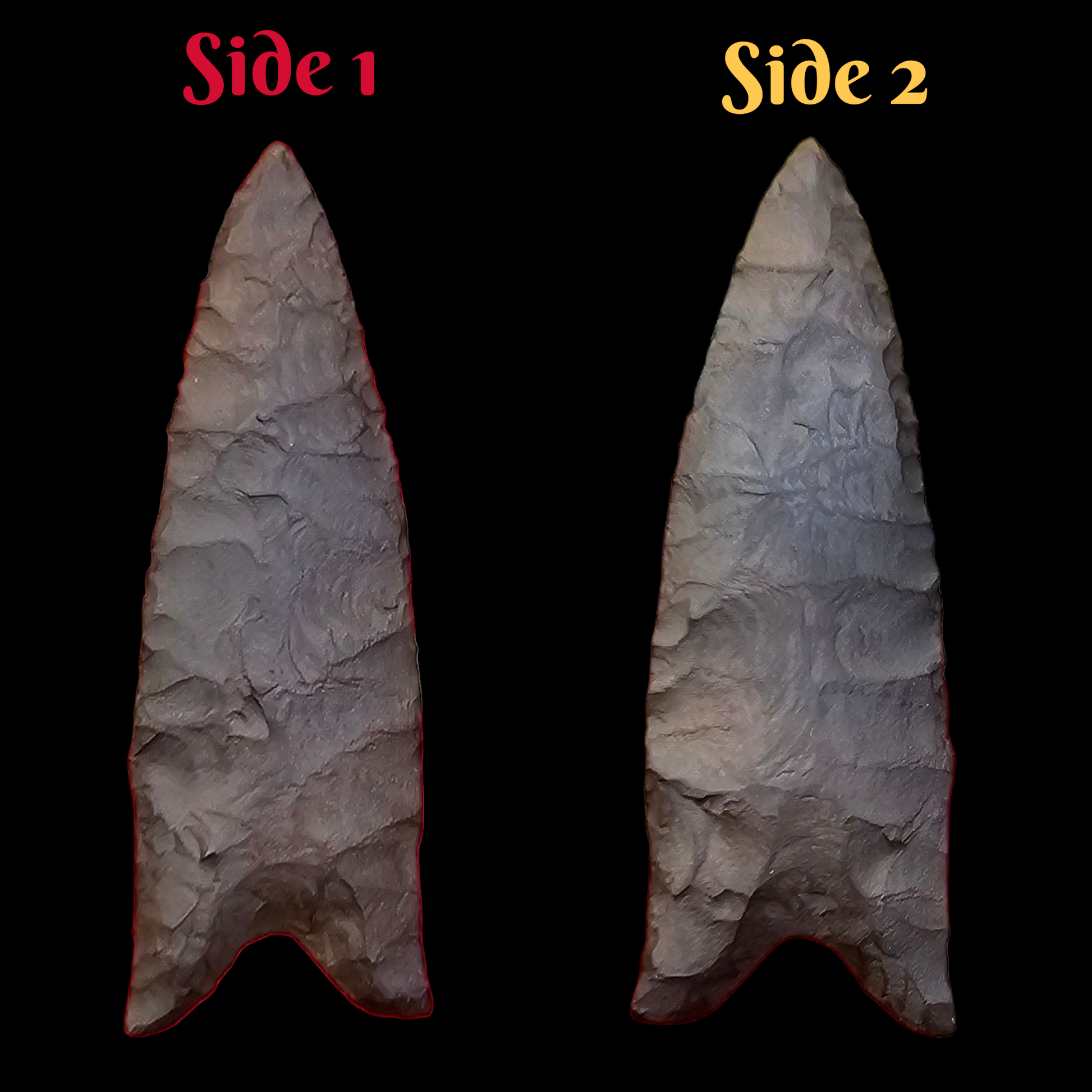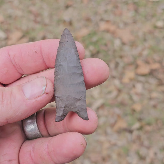 This is a modern Dalton type spear point / arrowhead that was knapped by yours truly from Rainy Buttes chert. Rainy Buttes is a North Dakota chert that interestingly enough is 30% heavier than your typical chert due to its high iron content.