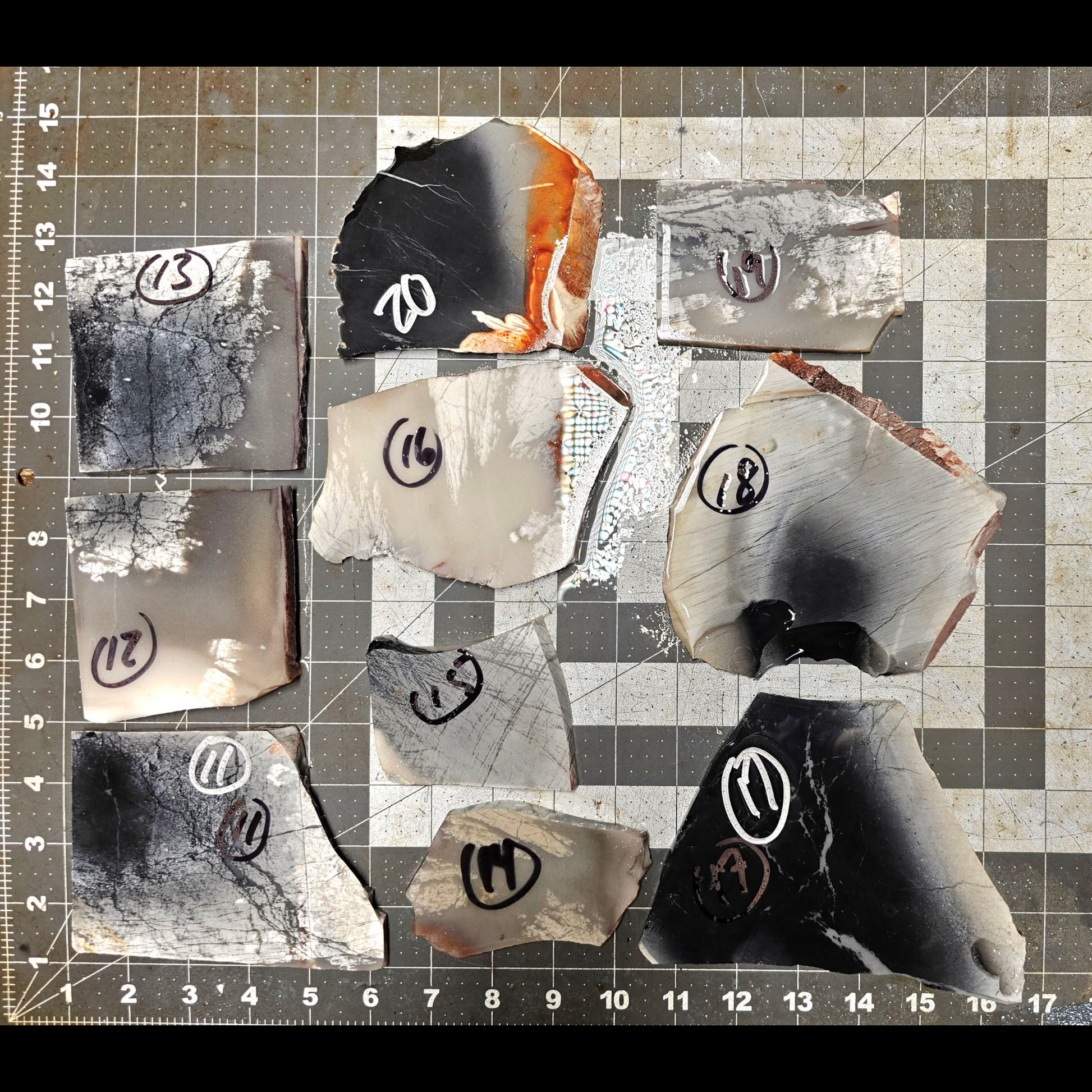 These are heat treated Novaculite slabs and are 5/16 to 3/8" thick and ready to knapp. These are perfect for making arrowhead and atalatl sized points.