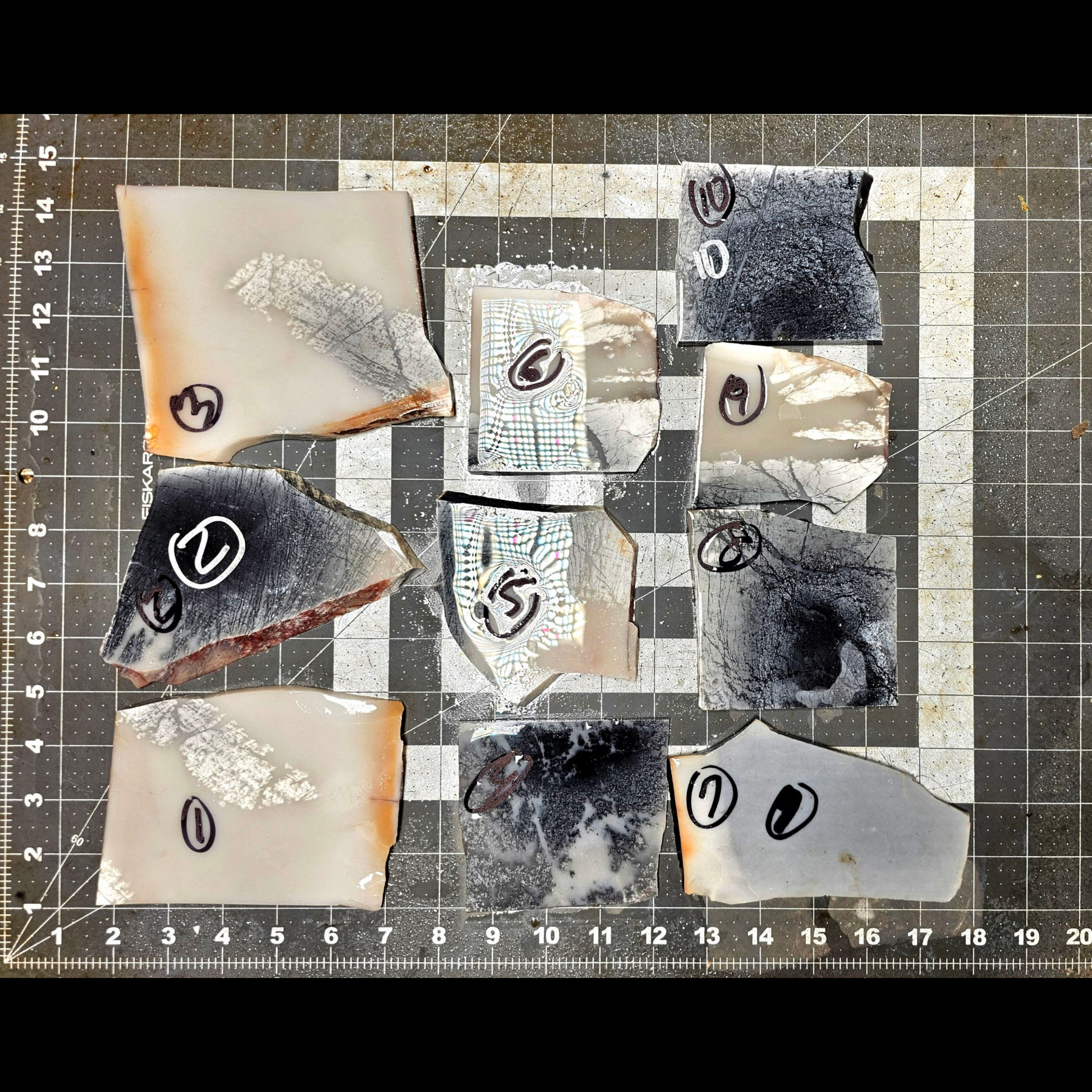 These are heat treated Novaculite slabs and are 5/16 to 3/8" thick and ready to knapp.