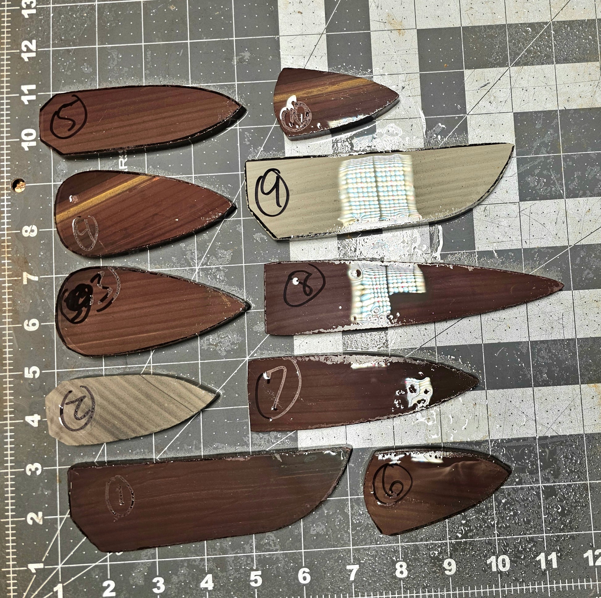 These porcelainite preforms will be availablein on a limitedbasis. I really do love this material. The preforms are 5/16 to 3/8" thick and ready to knapp. There is a video on my YouTube channel Danny Collins Lithics & Leather showing the point in the listening being knapped.