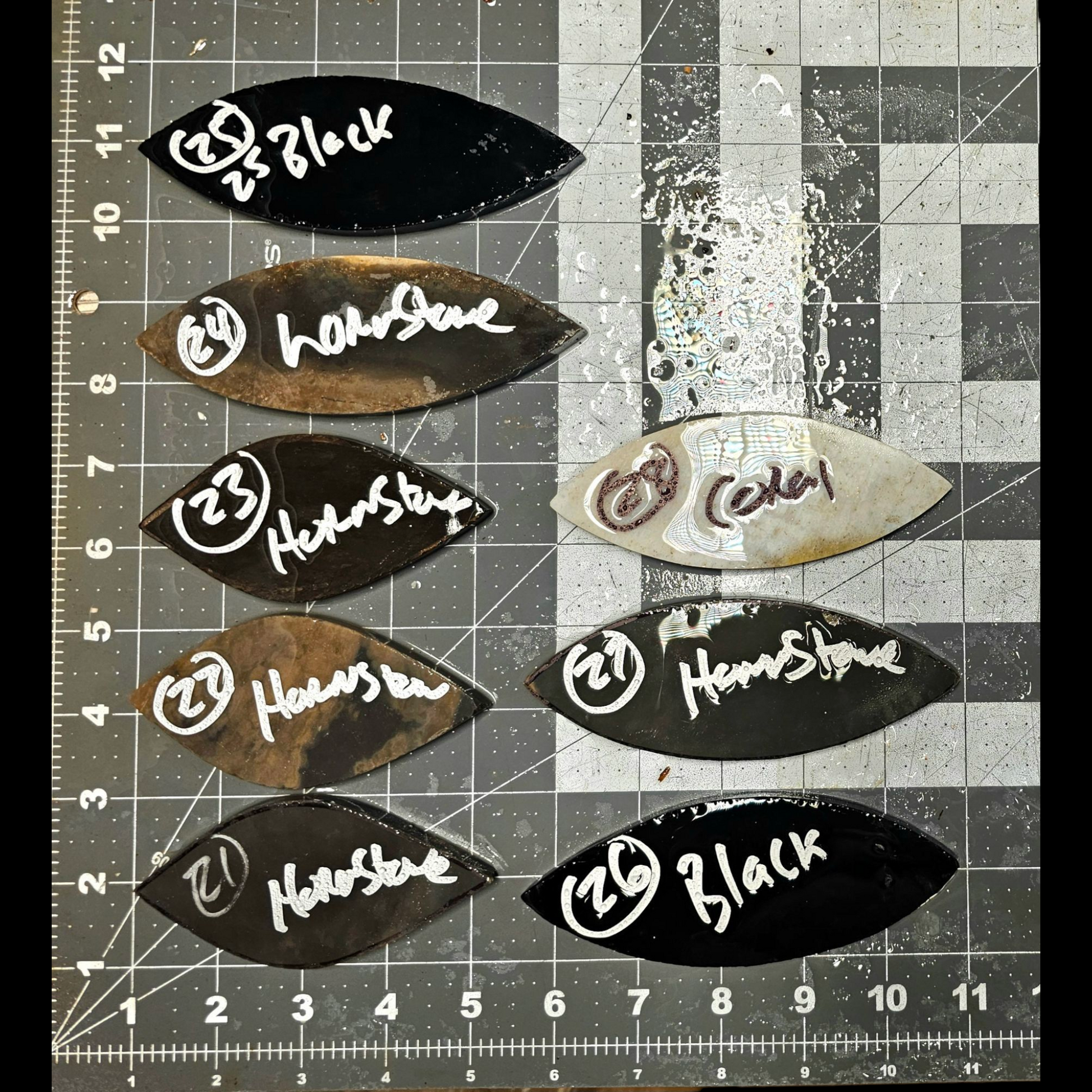 These TurkeyTail preforms are one of several new point specific preforms we are making available. The preforms are 5/16 to 3/8" thick and ready to knapp.